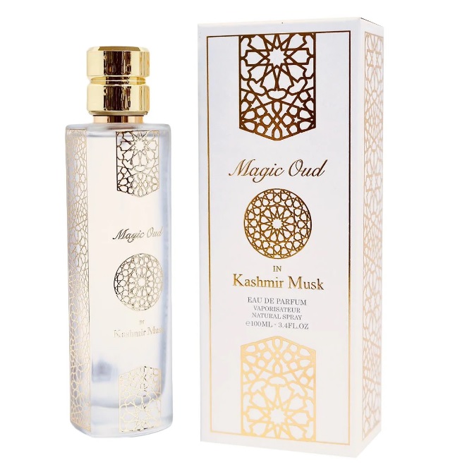 Magic Oud Kashmir Musk is unisex perfume suitable for every occasion and a unique fragrance that will revive your senses with a few whiffs. The scent is housed in a beautiful transparent bottle with a golden lid and golden engraved print for a graceful presentation. A delicate touch of silky smooth powdery perfume with opulent essences of Lilly of the valley Musk & Vanilla. A perfect gift for any perfume lover – a true presentation and combination of white musk and original oud essence. Long-lasting Eau de parfum and suitable for both men and women.