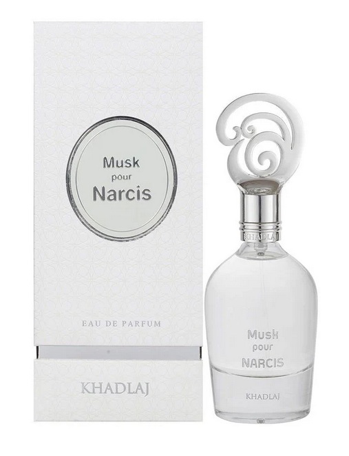 Musk Pour Narcis by Khadlaj featuring lavender, bergamot, musk, sandalwood, amber, and oud in an elegant musky woody composition. Elegant and refined, Musk Pour Narcis balances freshness with creamy warmth, making it both graceful and quietly captivating.